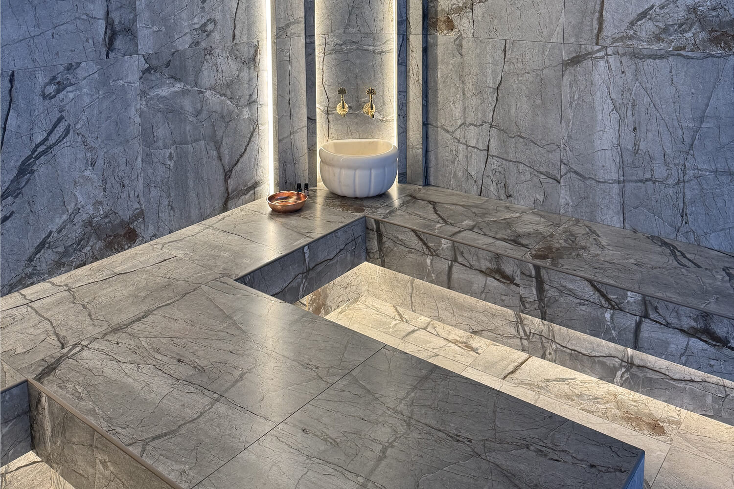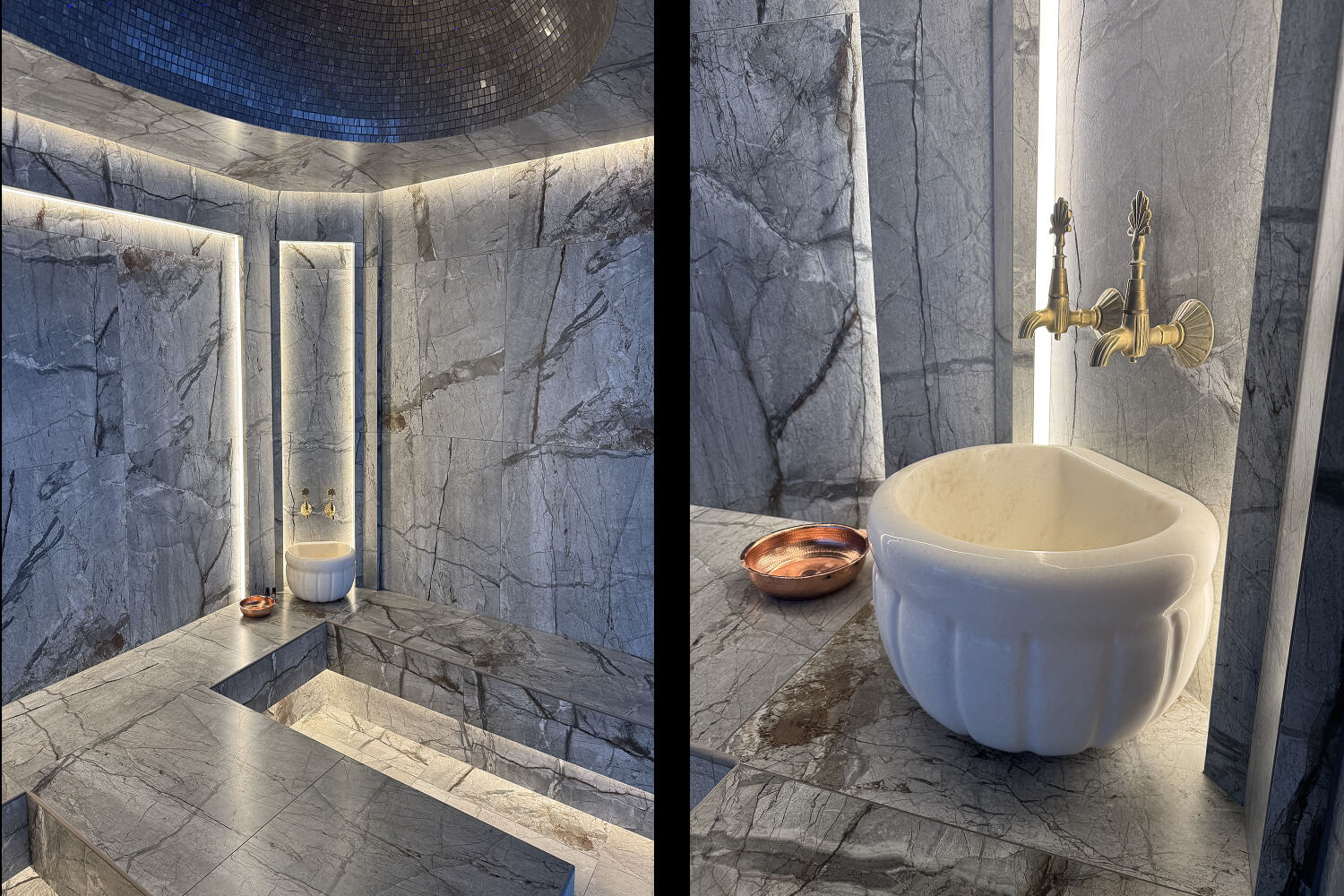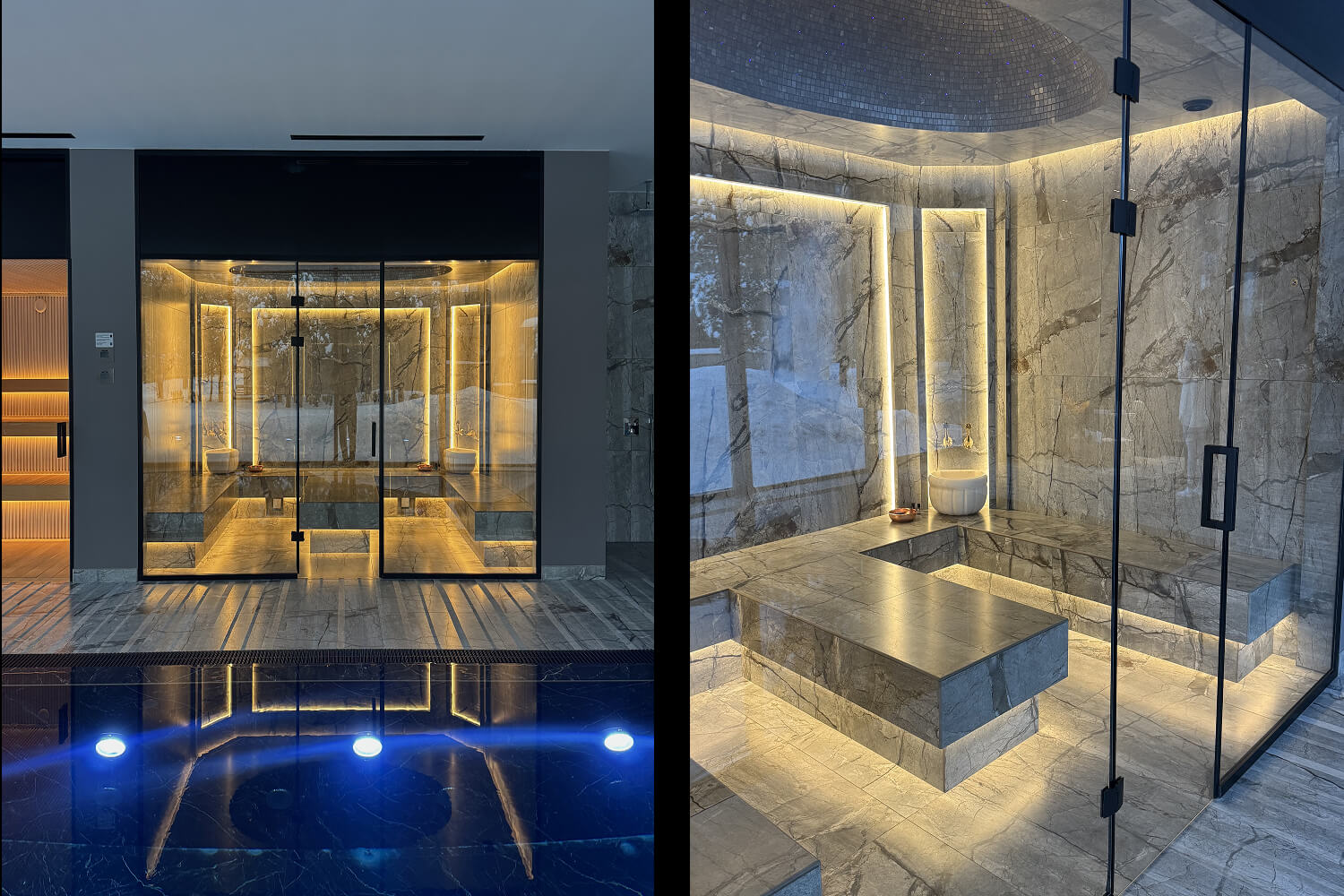 Качественная хаммам отделка выполнена с акцентом на натуральный камень и световые сценарии, создающие ощущение тепла и уединения: