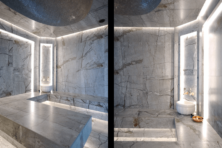 Проект реализован в помещении 4×2,5 метра и демонстрирует, как грамотно выполненная отделка хаммама может преобразить пространство и придать ему особую ауру.