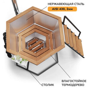 - Материалы: нержавеющая сталь AISI 430 и термодревесина