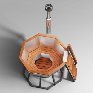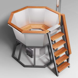 Модель CKGROUP PREMIUM 190 — это вместительный банный чан на дровах для 6 человек с расширенным комплектом: термокрышка, удобный столик и держатель для полотенец уже включены в стоимость. Чаша выполнена из прочной нержавеющей стали AISI 430, обшита натуральной лиственницей, а дровяная печь с водяной рубашкой нагревает воду до комфортной температуры всего за 2–3 часа.