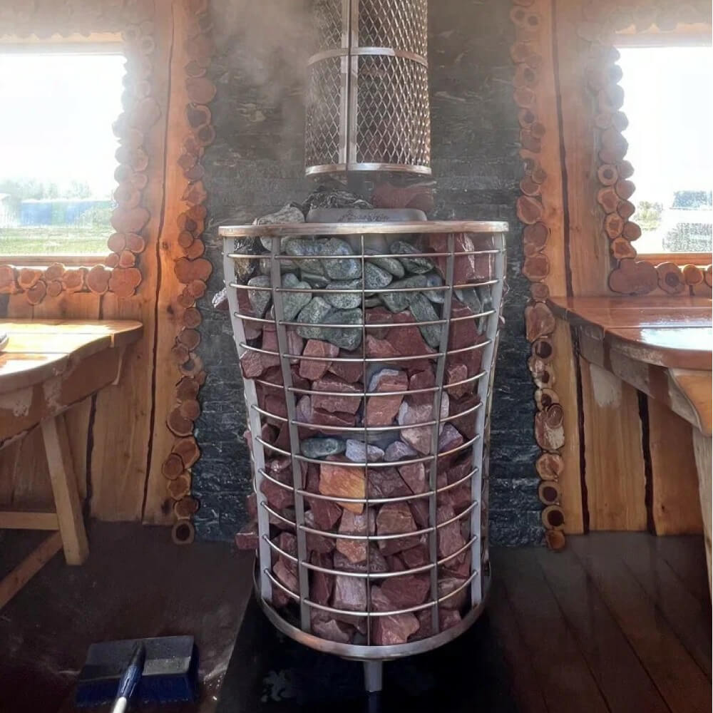 Конструкция печи выполнена в виде сетки из нержавеющей стали, которая заполняется большим количеством камней. Это обеспечивает быстрый прогрев парной, равномерное распределение тепла и длительное сохранение температуры. Такая печь-сетка для бани создает мягкий и комфортный микроклимат.