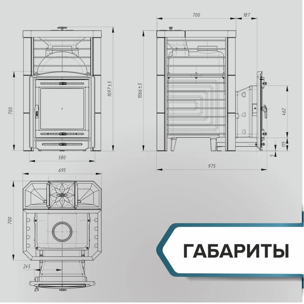 Топка изготовлена из жаропрочного чугуна, что гарантирует долговечность и устойчивость к высоким температурам. Толстостенная конструкция выдерживает интенсивные нагрузки, а продуманная система горения повышает КПД и снижает расход топлива. Если вам нужна надежная чугунная печь для бани, эта модель полностью оправдывает ожидания.