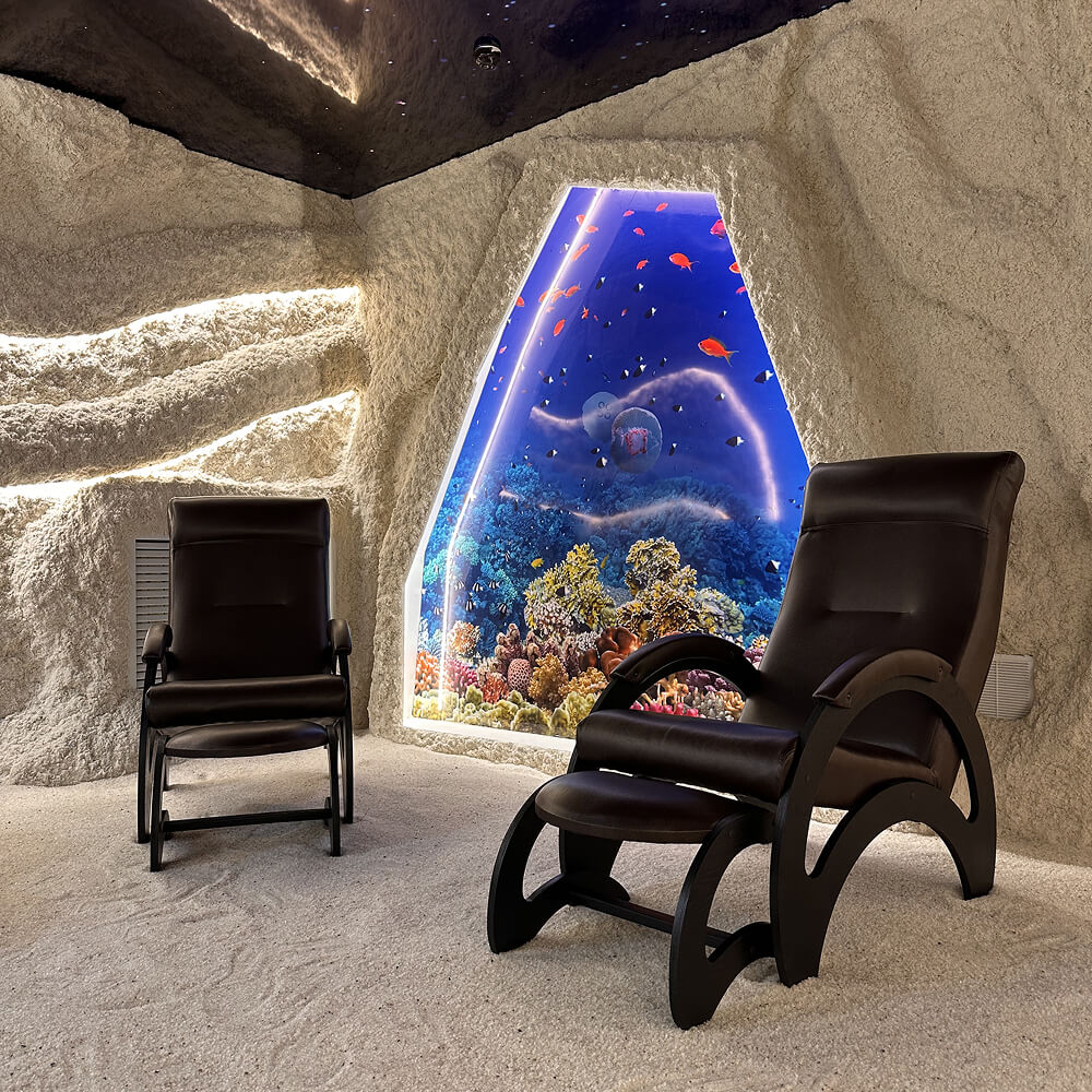 Материалы, которые мы используем для декорирования, не причиняют вреда ни персоналу, ни посетителям, и выглядят при этом очень красиво. Мы также готовы закупить и установить оборудование, провести пусконаладку, полностью подготовить процедурную комнату к работе. Чтобы заказать проект соляной комнаты, звоните нам или оставляйте заявку.